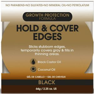 AFRICAN PRIDE BLACK CASTOR MIRACLE EDGE GEL : This Black Hold and Cover Edge Gel slicks stubborn edges, temporarily covers gray and fills in thinning areas. No flaking, no greasiness, no parabens, no sulfates, no mineral oil, and no petrolatum.