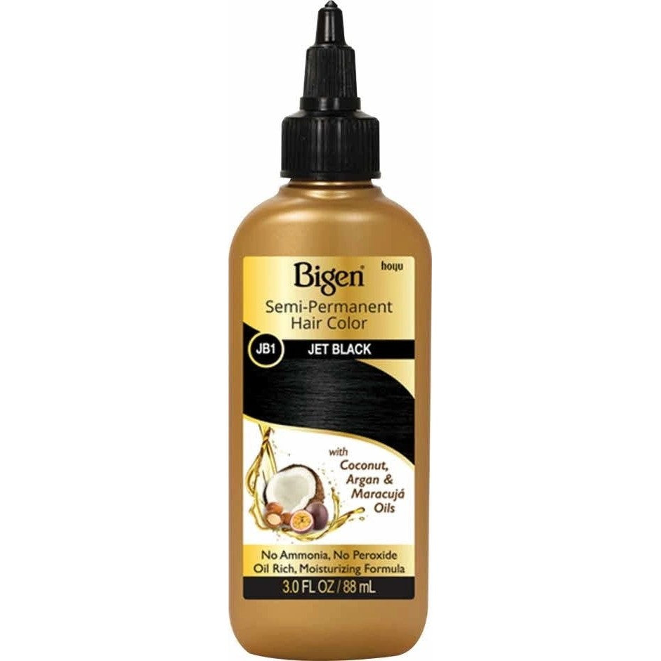 BIGEN SEMI PERMANENT H/C [JB1] JET BLACK 3oz : Bigen Semi-Permanent Hair Color is a gentle, oil-rich, conditioning formula nourishes hair with honey, beeswax & sunflower, while providing long-lasting color without ammonia or peroxide. Excellent gray hair coverage. Safe for all hair types including chemically treated and relaxed hair. Leaves hair shiny, soft and beautiful.