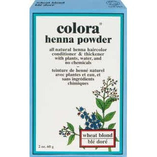 COLORA HENNA POWDER H/C [WHEAT BLOND] 2oz : Colora Henna works wonders for your hair, particularly if it feels dull and lifeless. Natural Henna adds body and bounce and offers a choice of rich but subtle color changes. Colora brightens and highlights your hair, leaving it gleaming and elegant. Color your hair in just 4 easy steps. Add color, condition and body with no peroxide or ammonia.