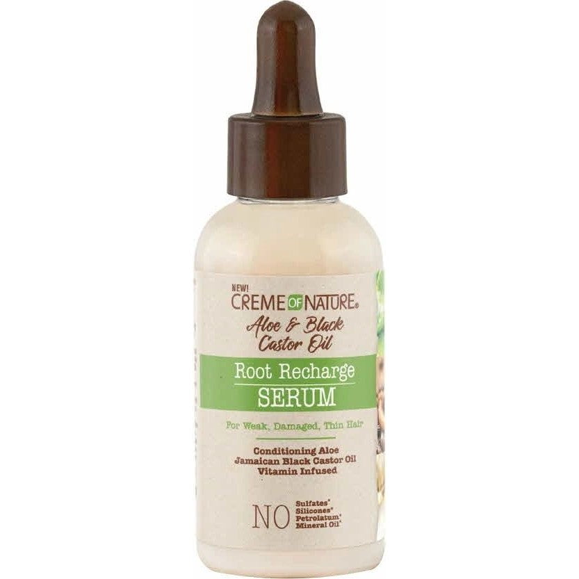 CON ALOE&BLACK CASTOR OIL SERUM: Protect against damage when styling and restore moisture to areas, such as edges and napes, with our Root Recharge Serum while building the strength you need for beautiful, healthier looking hair.
