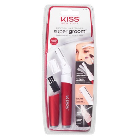 Introducing the KISS SUPER GROOM HAIR TRIMMER (24630), the ultimate grooming tool for achieving salon-like perfection from the comfort of your own home. This hair trimmer is a must-have accessory in your cosmetics collection, designed to effortlessly trim and style your hair with precision. The KISS SUPER GROOM HAIR TRIMMER comes in an eye-catching red and white set, which includes a set of brushes and a comb, all conveniently packaged together. This comprehensive grooming set ensures that you have everything you need to achieve the desired hairstyle, from detangling and styling to precise trimming. With its sleek and ergonomic design, this hair trimmer fits comfortably in your hand for easy maneuverability and control. The sharp blades are crafted from high-quality materials, ensuring a precise and efficient trimming experience. Whether you want to maintain your beard, sideburns, or achieve a clean-cut look, this hair trimmer delivers professional results every time. The KISS SUPER GROOM HAIR TRIMMER is not only a practical tool but also a stylish addition to your grooming routine. The packaging showcases the iconic "kiss" logo, adding a touch of elegance and sophistication to your cosmetic collection. This makes it an ideal gift for yourself or your loved ones who value both