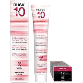 RUSK IN10 H/C 1N BLACK 3.4oz: Ten Minute Permanent Cream Color with Terra Marine Complex. A unique blend of botanical and marine sourced oils and amino acids to deliver superior condition to hair.