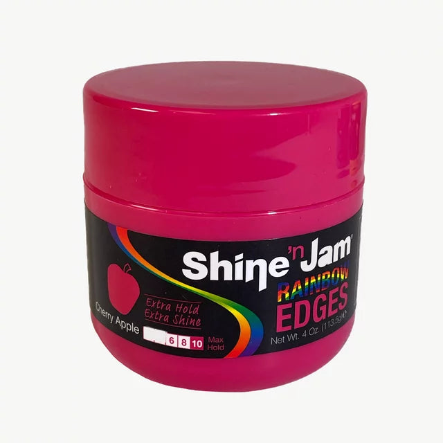 Get ready to rock your edges with SHINE'N JAM RAINBOW EDGE! This innovative hair gel not only tames and smoothes your edges, but also adds a vibrant pop of color. Show off your unique style and make a statement with SHINE'N JAM RAINBOW EDGE!